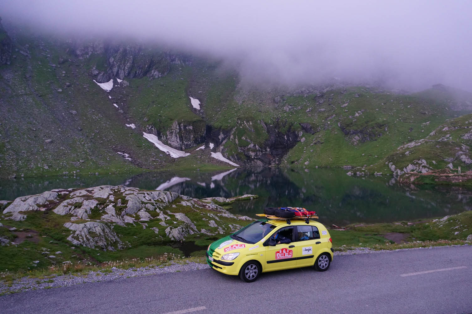 Nachdem die Einfahrt in Ungarn eher bürokratisch ablief zeigte sich der rumänische Grenzbeamte eher erstaunt. „Where are you going to?“ – „Mongolia“ – „Mongolia?! Move on!“. Nun kurven wir also durch das Armenhaus Europas auf irgendwelchen Überlandstrassen. Und es macht der Anschein, dass Rumänien den Strassen entlang vor allem zwei augenscheinliche Dinge zu bieten hat; Prostitution und streunende Hunde, tot oder lebendig. Doch wenn man sich so durch die Agrarlandschaften durchkämpft kommt er, der Pass für welchen unser Hyundai gebaut wurde, der Transfagarasanul (Umlaute bitte selbst ergänzen). Nachdem wir unser Base Camp am Fusse des Passes aufbauten, standen wir um 04.30 auf um ihn in den Stunden kurz vor Sonnenaufgang zu bezwingen. Problemlos windete sich unser Getz die unzähligen Kurven empor zur Passhöhe. Doch die Strassen zeigten uns eins, wer hinten sitzt, wo die Stossdämpfer am Anschlag sind, sollte besser viel Sitzfleisch mitbringen, denn die Schläge gehen jeweils durch Mark und Bein. Zudem haben wir jetzt einen kernigen Sound. Geröll, welches auf der Strasse lag, hat unseren Auspuff etwas demoliert. Aber nicht weiter tragisch, so können wir uns nun schon von weitem bei jedem rumänischen Kaff anmelden.