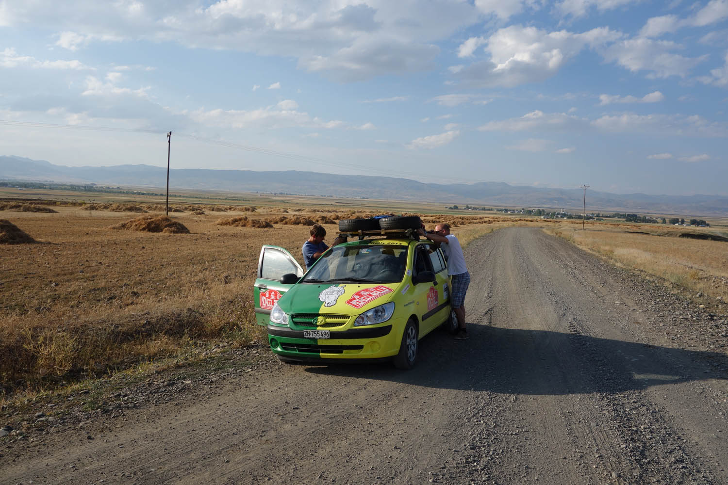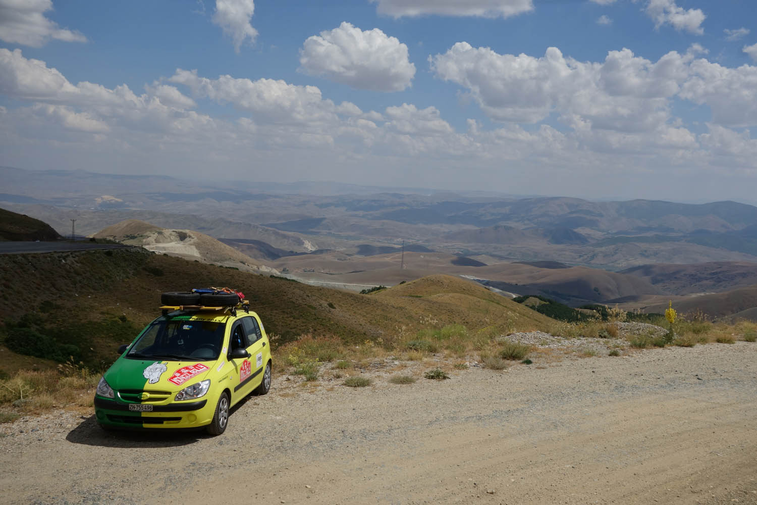 Langsam aber sicher wird uns das Ausmass unseres Hirngespinst „Mongol Rally“ klar. Riesige Distanzen müssen überbrückt werden. Unsere Tage werden länger, oft stehen wir um 6 Uhr morgens auf um früh auf den türkischen Strassen zu sein. Nur um dann festzustellen, dass ein Team noch früher aufgestanden ist. Vier Sterne Hotels sind Absteigen gewichen, doch das spielt keine Rolle, sind wir doch abends meist so geschlaucht, dass das Schlafambiente nicht mehr die grösste Rolle spielt. Je weiter wir gegen Osten vordringen umso langsamer kommen wir vorwärts. Die perfekten dreispurigen Autobahnen ab Istanbul haben sich verwandelt in klassische Überlandstrassen, welche wir gemäss den lokalen Gepflogenheiten unter die Räder nehmen: In der 50 km/h Zone mit 90 und in der 90 km/h Zone mit 130. Es sind Tage an welchem man intensiv seinen Gedanken nachgehen kann, welche man schon lange auf die Seite legte um sie in ein paar ruhigen Stunden mal richtig durchzuwälzen. Draussen zieht die Landschaft vorbei und wechselt langsam aber stetig von grün auf braun und die Bevölkerung wird traditioneller aber auch neugieriger. Kaum einen türkischen Kaffee trinken wir ohne mit Händen und Füssen unsere Unternehmung zu erklären.