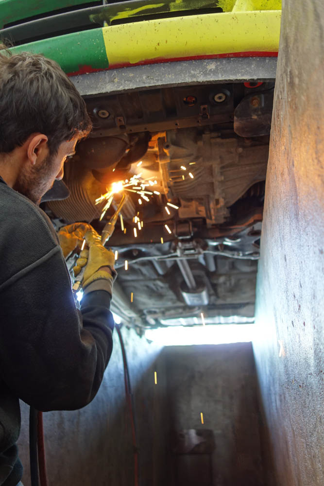 Kurz vor der iranischen Grenze entschlossen wir uns doch noch dazu unseren Auspuff neu schweissen zu lassen, denn selbst im Standgas hatten wir eine Lautstärke, dass man uns fast bis Teheran hören konnte. Mit neuem Auspuff fuhren wir also geputzt und gestriegelt beim südlichen Grenzübergang von der Türkei in den Iran vor. Der Übertritt war dann eine sehr kurze Sache. Da ein Stempel, dort ein Stempel, hier eine Hand geschüttelt, dort ein Witz zum Besten geben, die Frage „Alcohol? Big problem in Iran!“ souverän verneint und schon waren wir drinnen. Drinnen im sagenumwobenen und wirtschaftlich boykottierten Iran. Was sofort auffällt ist die unglaubliche Freundlichkeit der Iraner! Wir können eigentlich keinen Meter zurücklegen ohne, dass uns zugewunken, zugerufen und wir im Iran willkommen geheissen werden. Jeder möchte uns einmal die Pfoten schütteln.