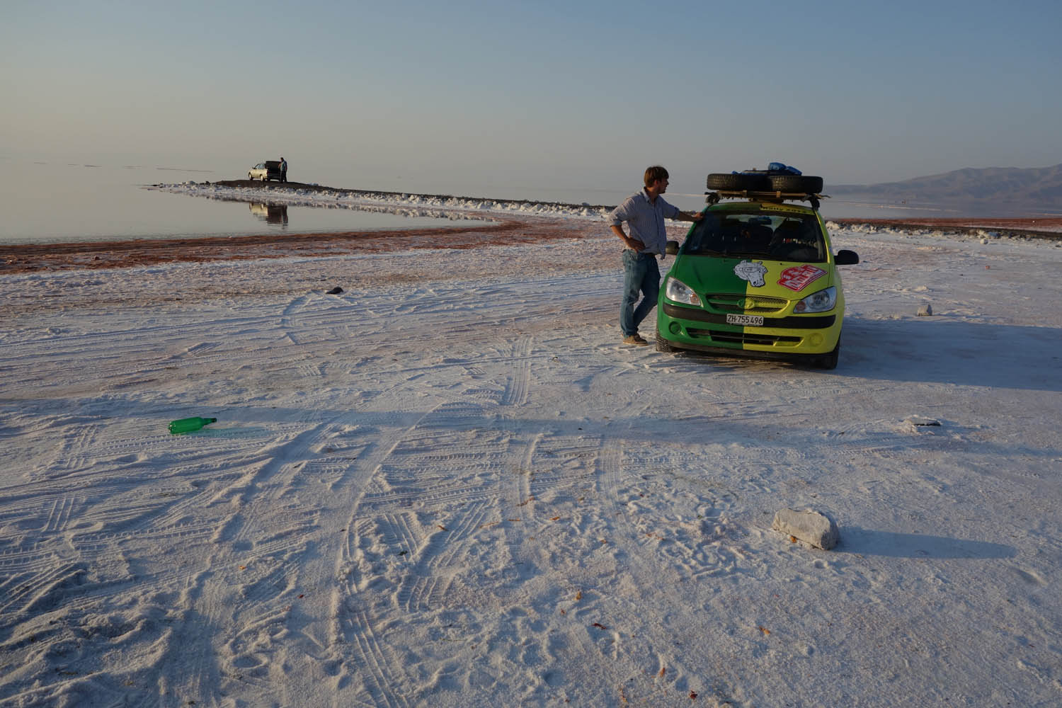 In Tabriz besuchten wir tags darauf noch schnell den Bazar (Unesco Weltkulturerbe) und weiter gings zum Kaspischen Meer. Der Weg führte uns durch eindrückliche staubtrockene hügelige Wüstenlandschaften, welche unsere Klimaanlage so ziemlich an den Anschlag brachte (Danke an dieser Stelle an Peter von der Garage Weibel AG in Landquart für die Reparatur), Richtung Meer. Ganz in der Tradition unseres Zeitmanagements, beanspruchte die Fahrt wieder einmal viel mehr Zeit als gedacht. Dementsprechend trafen wir wieder erst um 11 Uhr in der Nacht in einer Stadt am Meer ein. Müde und ohne genügend Rial in der Tasche war unsere Stimmung eher am Boden. Doch dann überholte uns ein Auto gefüllt mit Youngstern aus Teheran. Wie man es so macht in Iran unterhielten wir uns, während der Fahrt selbstverständlich, durchs Fenster und es stellte sich heraus, dass sie gerne ein Foto mit uns machen möchten. Warum auch nicht. Also den jungen Teheranern gefolgt und Foto gemacht. Ende der Geschichte. Nein, nicht im Iran. So gastfreundlich wie sie halt sind, organsierten die Jungs und Mädels (bad girls) kurzerhand noch eine Fahrt durch die sumpfigen Randgewässer des Kaspischen Meeres mit zwei Schnellbooten. Willkommen im neuen, jungen Iran. Vieles ist möglich und es scheint, die Jugend weiss ganz genau, was sie sich erlauben kann und was nicht. Fotos mit Frauen an einem abgelegenen Ort geht in Ordnung. Die Frauen per Händedruck zu verabschieden ist zuviel. Es ist ein schmaler Grat, welcher, so scheint es, durch die iranische Jugend langsam breitgetrampelt wird. So verwundert es auch nicht, dass nach Alkohol in dieser Nacht nicht lange gesucht werden musste.